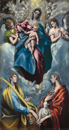 El Greco (Domenikos Theotokopoulos), Madonna and Child with Saint Martina and Saint Agnes, 1597/1599, oil on canvas, Widener Collection