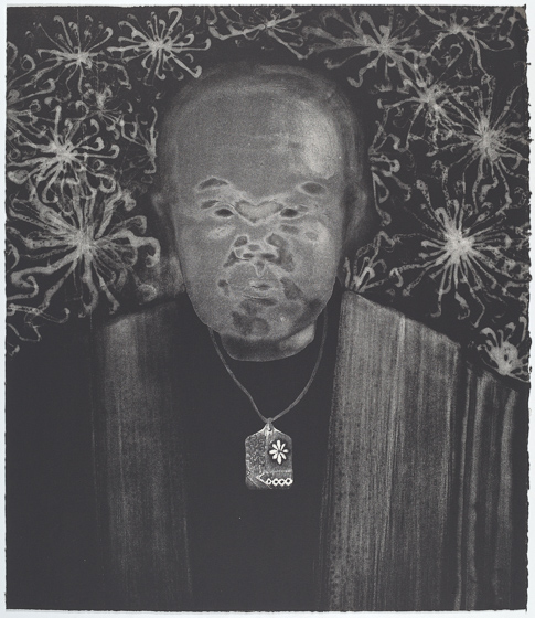 Asawa made this printed portrait of her father, Umakichi, in 1965. Umakichi was arrested by the FBI in 1942, when Asawa was in high school. At the time he was a 60-year-old farmer who had been a US resident for 40 years. Asawa did not see her father again until 1948. How does Asawa depict her father here? Why do you think she might have chosen to show his face in the way she does?
