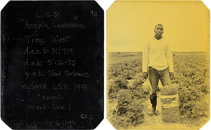 Artist Deborah Luster photographed inmate Troy West at Louisiana State Penitentiary, commonly called Angola, on June 11, 1999. West was one of over 1,000 inmates Luster photographed at three different prisons in Louisiana as part of the series One Big Self. Luster encouraged her subjects to pose as they wished, incorporating objects or a background of their own choosing. Subjects received small wallet-sized reproductions they could share with friends or family members.