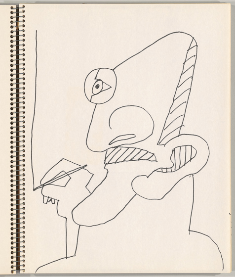 Saul Steinberg, Self-Portrait, Drawing, c. 1986/1995, black felt-tip pen on wove paper in spiral-bound sketchbook, Gift of The Saul Steinberg Foundation, 2016.143.35.22