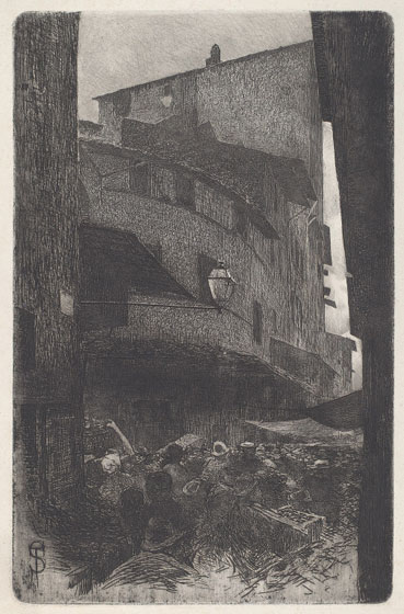 Telemaco Signorini, Via Santa Maria della Tromba, 1886, etching, The Ahmanson Foundation