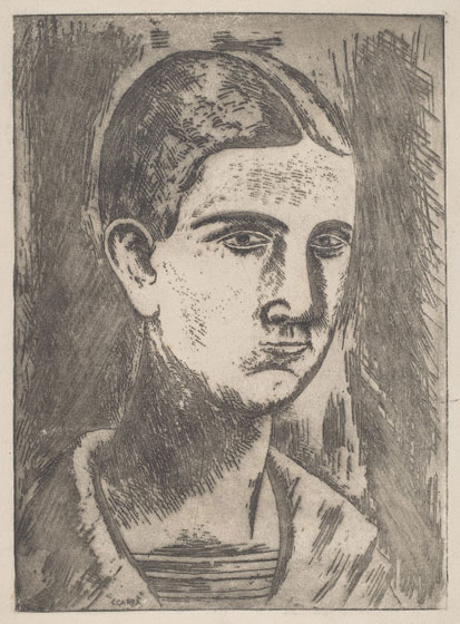 Carlo Carrà, Testa di Ragazzo (Head of a Boy), 1919, etching, Pepita Milmore Memorial Fund