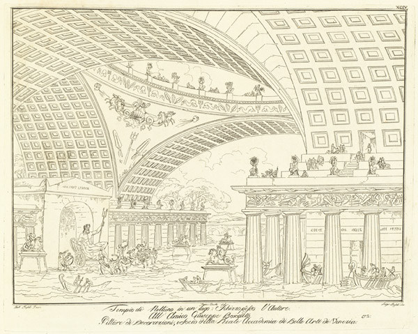Temple of Neptune in a Lake (Tempio di Nettuno in un lago), plate XCIV in Collection of Noble, Rustic, and Landscape Perspectives (Raccolta di prospettive serie, rustiche, e di paesaggio), 1810