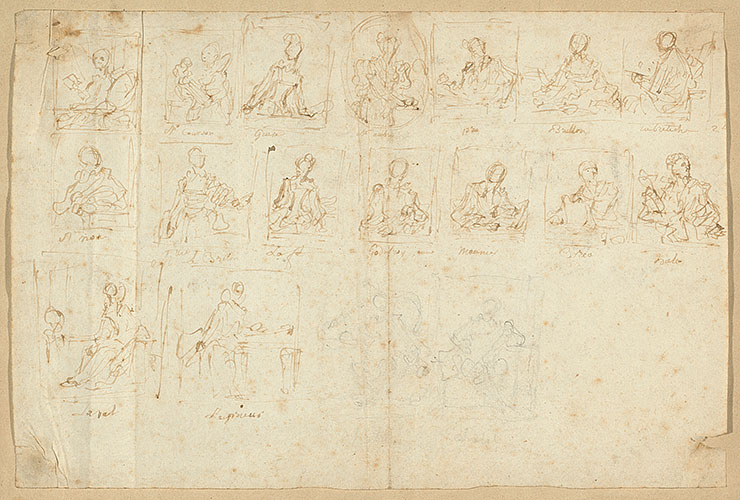 Jean Honoré Fragonard, Sketches of Portraits, c. 1769, drawing, Private collection