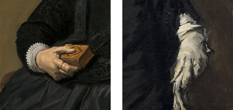 To compare Hals' changing styles, it is instructive to look carefully at details, such as lace collars, that he treated very differently during his development. Two details of hands—separated by some twenty years—demonstrate an evolution in Hals' technique.