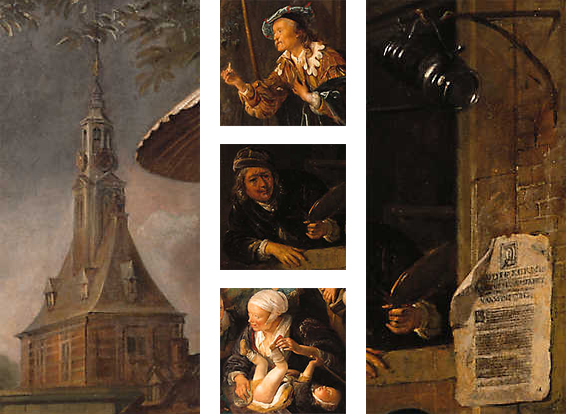 Gerrit Dou, The Quack (details), 1652; oil on panel, rounded top, 112 x 83 (44 1/8 x 32 3/4), Museum Boijmans van Beuningen, Rotterdam