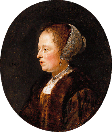Gerrit Dou, Portrait of a Woman, c. 1635-1640, oil on panel, oval, 13.3 x 11.3 (5 1/4 x 4 3/8), private collection