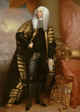 Stuart was invited to Dublin in 1787 for a commission and seized the opportunity to escape the competition of London and his mounting debts there. Painting in the English manner of his London portraits, he quickly established himself as the most successful portraitist in Dublin; however, he took on so many commissions that he failed to finish a number of them, even after taking partial payments at the first sitting. After purchasing a farm outside the city, Stuart went into debt and landed in jail briefly in 1789. Despite this setback, his successes were numerous and included the ambitious portrait of John FitzGibbon, the newly appointed lord chancellor. Splendidly clothed in the robes of his new office, the chancellor peers out beneath a long, full wig, his haughty countenance a perfect expression of his imperious attitude. Painting this type of regal full-length portrait, meant for public display, would serve Stuart well when he returned to the United States to paint its new president.
