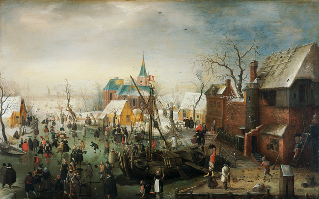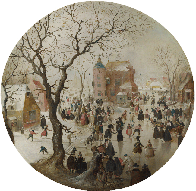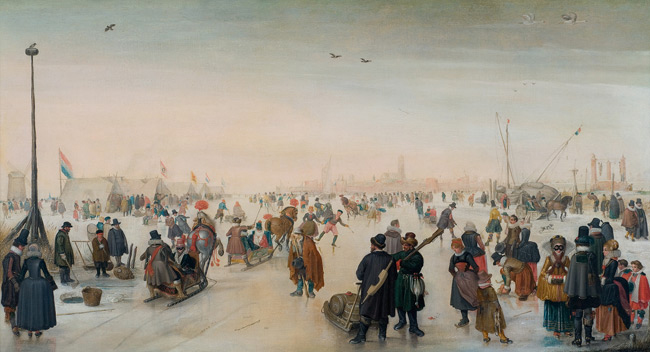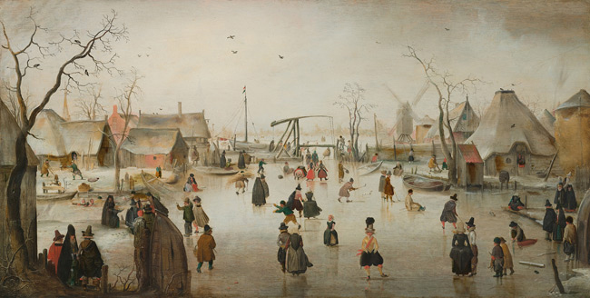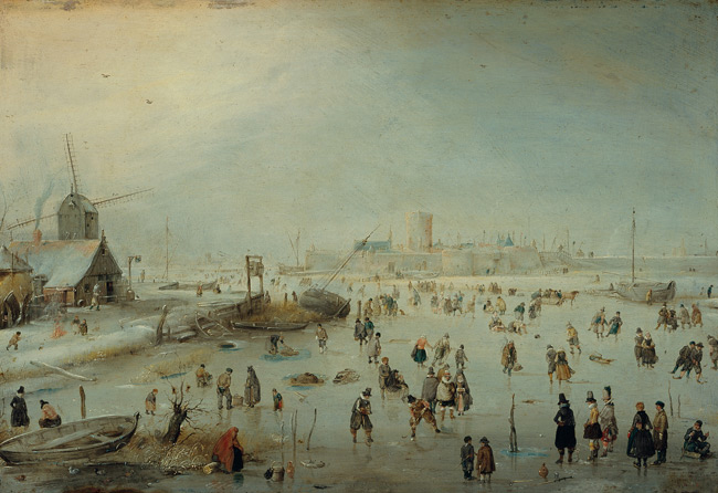 Ice Skating near a Village, c. 1610, oil on panel, Royal Picture Gallery Mauritshuis, The Hague, on long-term loan from the Rijksmuseum, Amsterdam