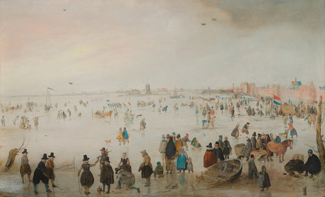 Winter Scene on a Frozen Canal, c. 1620, oil on panel, Los Angeles County Museum of Art, Partial gift of Mr. and Mrs. Edward William Carter and purchased with funds provided by The Ahmanson Foundation, the Paul Rodman Mabury Collection, the William Randolph Hearst Collection, the Michael J. Connell Foundation, the Marion Davies Collection, Mr. and Mrs. Lauritz Melchior, Mr. and Mrs. R. Stanton Avery, the Estate of Anita M. Baldwin by exchange, and Hannah L. Carter