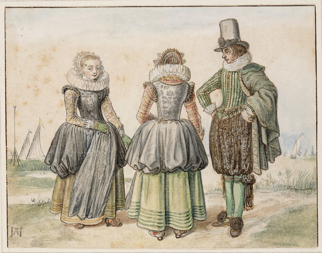 Three Richly Dressed Figures in a Landscape, c. 1620, pen and ink and watercolor, over graphite, Teylers Museum, Haarlem