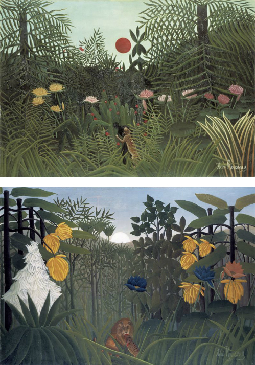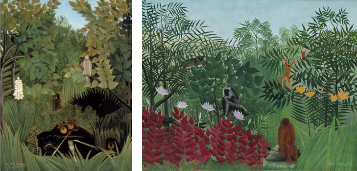(right) Tropical Forest with Monkeys, 1910, oil on canvas, John Hay Whitney Collection, 1982.76.7