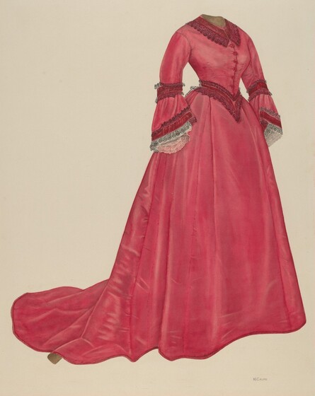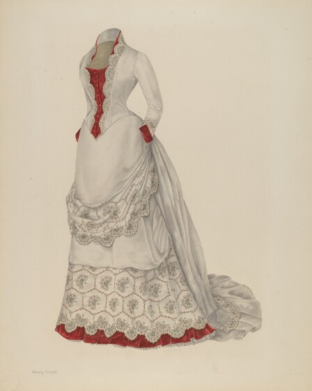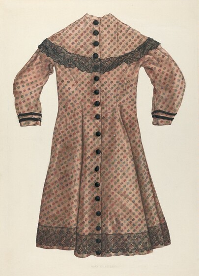 Julie C. Brush (artist), American, active c. 1935, Anonymous Craftsman (object maker), Mrs. Frances Hall (object owner), Dress, 1935/1942, watercolor, graphite, and pen and ink on paperboard, Index of American Design, 1943.8.2696