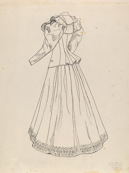 Julie C. Brush (artist), American, active c. 1935, Anonymous Craftsman (object maker), Mrs. Marion Norton (object owner), Dress, c. 1938, pen and ink on paper, Index of American Design, 1943.8.1415