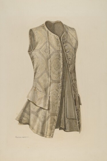 Florence Earl (artist), American, active c. 1935, Anonymous Craftsman (object maker), Oneida County Historical Society (object owner), Silk Vest, c. 1938, watercolor, graphite, and colored pencil on paperboard, Index of American Design, 1943.8.1603