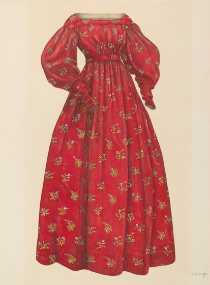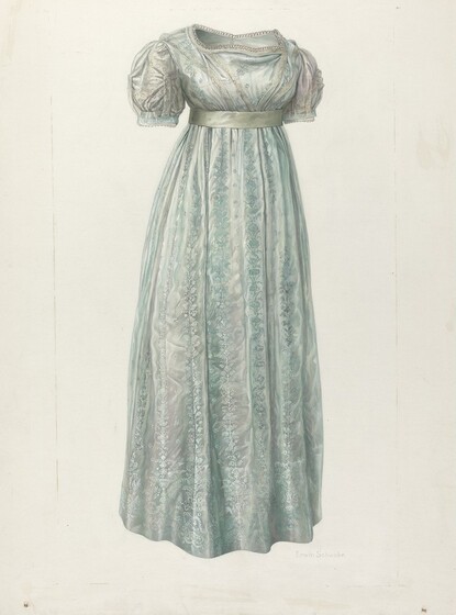 Virginia Berge (artist), American, active c. 1935, Anonymous Craftsman (object maker), Plymouth Antiquarian Society (object owner), Dress, 1935/1942, watercolor and graphite on paperboard, Index of American Design, 1943.8.1574
