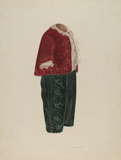 Nancy Crimi (artist), American, active c. 1935, Anonymous Craftsman (object maker), Brooklyn Museum (object owner), Boy's Suit, 1935/1942, watercolor, pen and ink, and graphite on paperboard, Index of American Design, 1943.8.1719