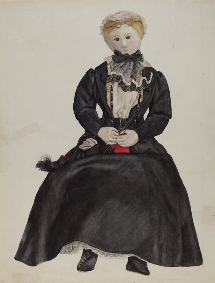 Mina Lowry (artist), American, 1894 - 1942, Anonymous Craftsman (object maker), Miss Polaire Weissman (object owner), Doll, c. 1936, watercolor, gouache, and graphite on paper, Index of American Design, 1943.8.15496