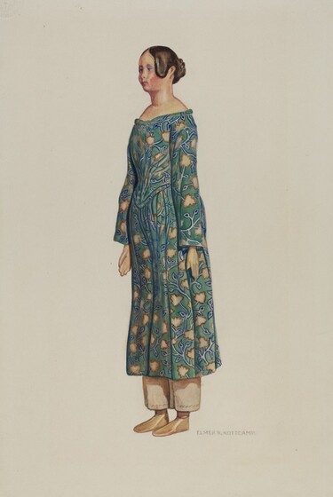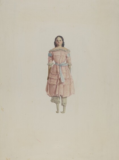 Anne Colman (artist), American, active c. 1935, Anonymous Craftsman (object maker), Mrs. Donald Boudeman (object owner), Doll--"Cornelia", c. 1937, watercolor, gouache, and graphite on paperboard, Index of American Design, 1943.8.15385