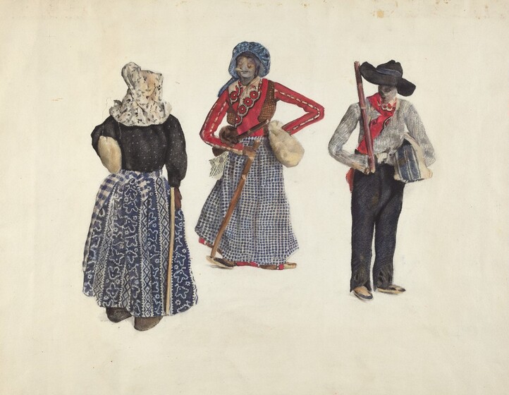 American 20th Century (artist), Anonymous Craftsman (object maker), Wenham Historical Society (object owner), Dolls (Apache Women), 1935/1942, watercolor and graphite on paper, Index of American Design, 1943.8.15544