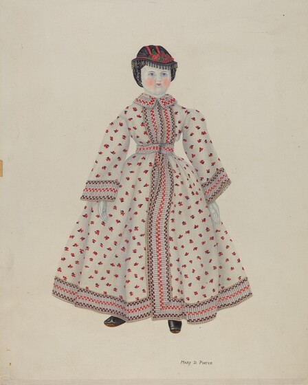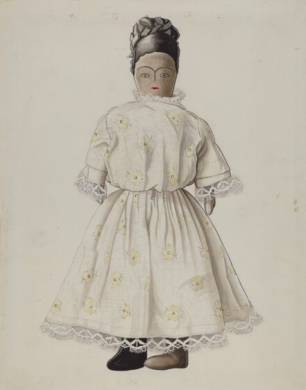 Renee A. Monfalcone (artist), American, active c. 1935, Anonymous Craftsman (object maker), Confederate Museum (object owner), Doll--"Nina", 1935/1942, watercolor and graphite on paperboard, Index of American Design, 1943.8.15538
