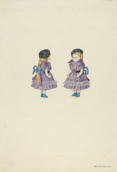 Jane Iverson (artist), American, active c. 1935, Mrs. Almira Smith (object maker), Wenham Historical Society (object owner), American Dolls, c. 1936, watercolor, graphite, and pen and ink on paper, Index of American Design, 1943.8.15576