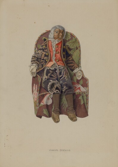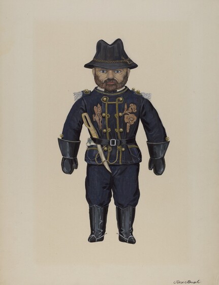 Rex F. Bush (artist), American, active c. 1935, Anonymous Craftsman (object maker), Mrs. Donald Boudeman (object owner), Doll--"General Grant", c. 1937, watercolor, gouache, and pen and ink on paperboard, Index of American Design, 1943.8.16646