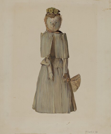 Jane Iverson (artist), American, active c. 1935, Anonymous Craftsman (object maker), Essex Institute (object owner), Corn Husk Doll, c. 1936, watercolor, graphite, and gouache on paper, Index of American Design, 1943.8.15609