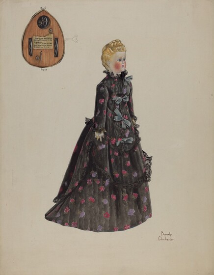 Beverly Chichester (artist), American, active c. 1935, Anonymous Craftsman (object maker), Edison Institute of Technology (object owner), Walking Doll, c. 1938, watercolor and graphite on paperboard, Index of American Design, 1943.8.15540