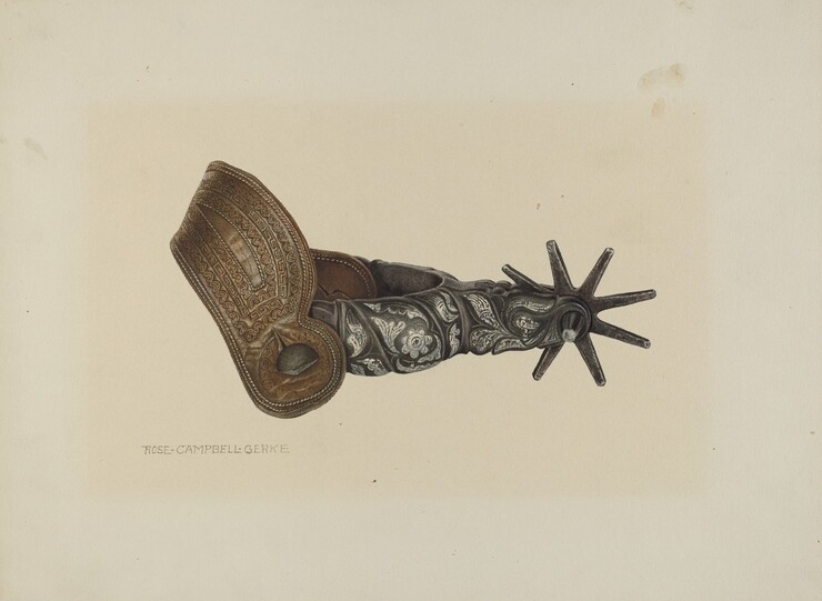 Rose Campbell-Gerke (artist), American, active c. 1935, Anonymous Craftsman (object maker), R.A. Poston (object owner), Inlaid Spur, c. 1937, watercolor, graphite, colored pencil, and pen and ink, Index of American Design, 1943.8.1860
