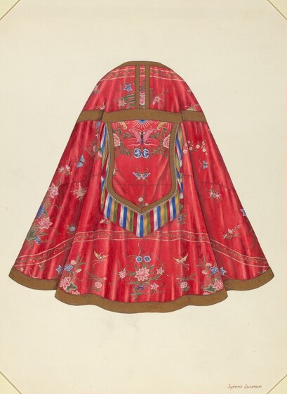 Syrena Swanson (artist), American, active c. 1935, Anonymous Craftsman (object maker), Ecclesiastical Vestment (back view), c. 1940, watercolor, gouache and graphite on paper, Index of American Design, 1943.8.3232