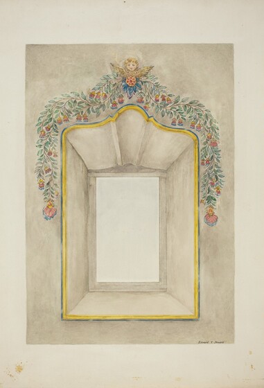 Geoffrey Holt (artist), American, active c. 1935, Anonymous Craftsman (object maker), Restoration Drawing: Wall Decoration Over Doorway, Facade of Mission-House, c. 1937, watercolor, colored pencil, and graphite on paper, Index of American Design, 1943.8.5941
