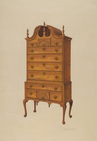 Francis Borelli (artist), American, active c. 1935, William Savery (object maker), The Metropolitan Museum of Art (object owner), Highboy, c. 1938, watercolor, colored pencil, and graphite on paperboard, Index of American Design, 1943.8.5916