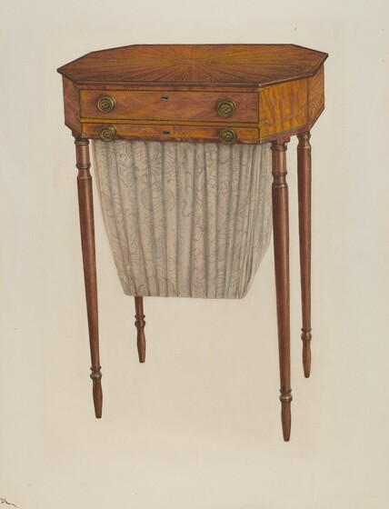 Rolland Livingstone (artist), American, active c. 1935, Anonymous Craftsman (object maker), The Metropolitan Museum of Art (object owner), Sewing Table, 1941, watercolor, colored pencil, and graphite on paperboard, Index of American Design, 1943.8.5806
