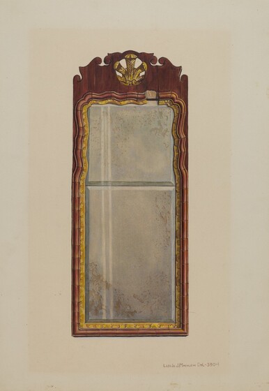Leslie Macklem (artist), American, active c. 1935, Anonymous Craftsman (object maker), Frank P. Ewing (object owner), Queen Anne Mirror, c. 1939, watercolor, colored pencil, and graphite on paperboard, Index of American Design, 1943.8.5291