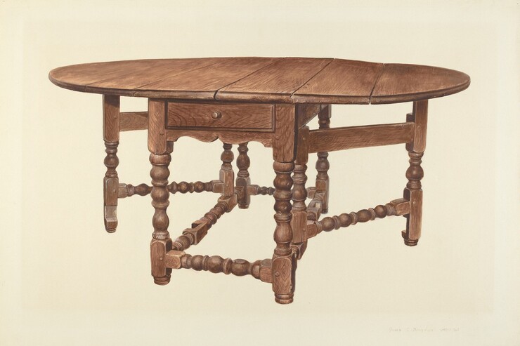Amos C. Brinton (artist), American, 1888 - 1982, Anonymous Craftsman (object maker), Jefferson David Chalfant (object owner), Gateleg Table, 1939, watercolor and gouache over graphite, Index of American Design, 1943.8.17986