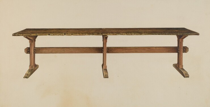 Isadore Goldberg (artist), American, active c. 1935, Anonymous Craftsman (object maker), The Metropolitan Museum of Art (object owner), Trestle Table, c. 1939, watercolor, colored pencil, and graphite on paperboard, Index of American Design, 1943.8.5893