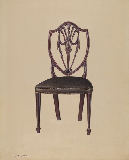 Louis Annino (artist), American, active c. 1935, Anonymous Craftsman (object maker), Brooklyn Museum (object owner), Side Chair, c. 1937, watercolor, gouache, colored pencil, and graphite on paperboard, Index of American Design, 1943.8.4249
