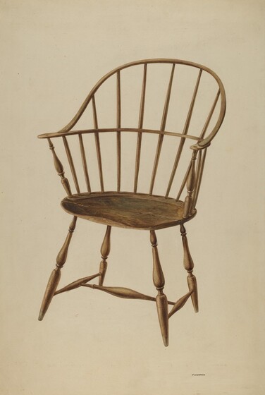 Louis Plogsted (artist), American, active c. 1935, Anonymous Craftsman (object maker), Buffalo Historical Society (object owner), Windsor Chair, c. 1939, watercolor, colored pencil, and pen and ink on paperboard, Index of American Design, 1943.8.4155