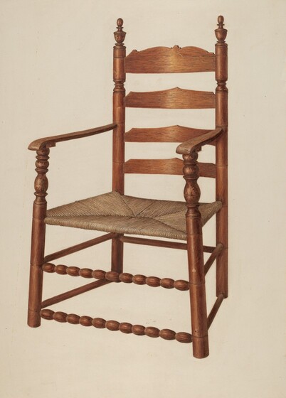 Anne Ger (artist), American, active c. 1935, Anonymous Craftsman (object maker), Museum of Fine Arts, Boston (object owner), Carver Armchair, 1936, gouache, watercolor, colored pencil, and graphite on paperboard, Index of American Design, 1943.8.4062