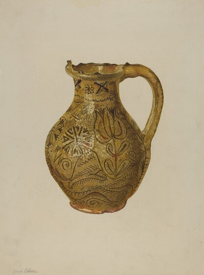 Giacinto Capelli (artist), American, active c. 1935, Anonymous Craftsman (object maker), The New-York Historical Society (object owner), Jug, 1941, watercolor, graphite, and colored pencil on paperboard, Index of American Design, 1943.8.7362