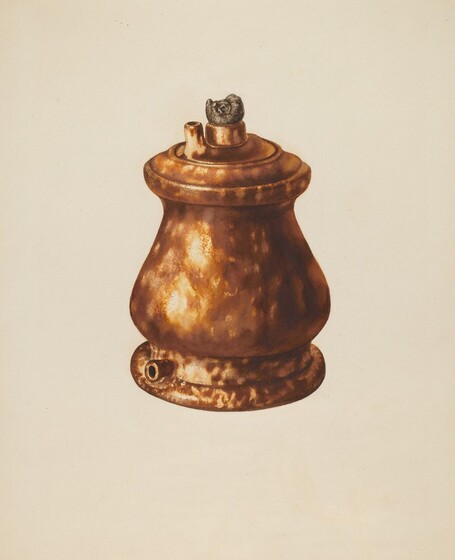 Henry Moran (artist), American, active c. 1935, Anonymous Craftsman (object maker), Philadelphia Museum of Art (object owner), Pennsylvania German Covered Jar, c. 1939, watercolor and gouache on paperboard, Index of American Design, 1943.8.8006