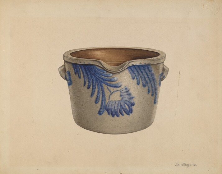 John Tarantino (artist), American, active c. 1935, Anonymous Craftsman (object maker), Julia E. Kuttner (object owner), Milk Pan, probably 1940, watercolor, graphite, and colored pencil on paperboard, Index of American Design, 1943.8.7021