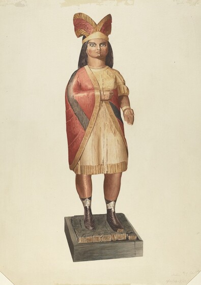 Elizabeth Johnson (artist), American, active c. 1935, Anonymous Craftsman (object maker), Heard Museum (object owner), Cigar Store Figure, c. 1942, watercolor, pen and ink, and graphite on paper, Index of American Design, 1943.8.16858