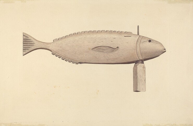 Albert Ryder (artist), American, active c. 1935, Anonymous Craftsman (object maker), Jean Lipman (object owner), Fish Weather Vane, c. 1938, watercolor and graphite on paper, Index of American Design, 1943.8.16879
