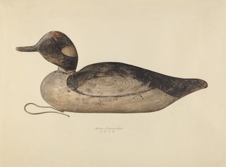 Max Fernekes (artist), American, 1905 - 1984, Dr. Archer (object maker), John Radermacher (object owner), Duck Decoy, 1937, watercolor and graphite on paper, Index of American Design, 1943.8.17980