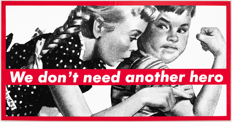Untitled (We don’t need another hero), 1987, silkscreen on vinyl, 108 ⅞ × 209 ³⁄₁₆ × 2 ½ in. (276.54 × 531.34 × 6.35 cm), Whitney Museum of American Art, New York. Gift from the Emily Fisher Landau Collection.