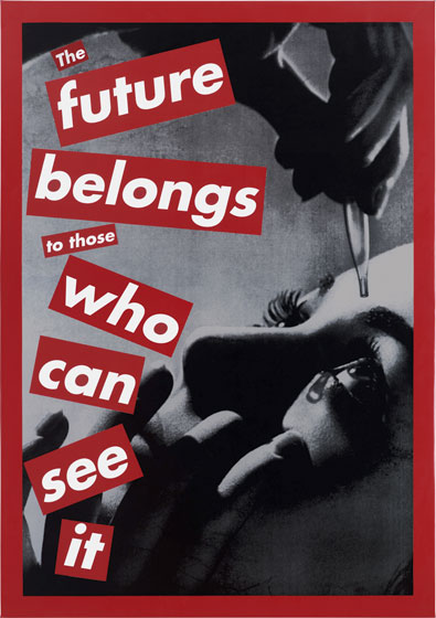 Untitled (The future belongs to those who can see it), 1997, silkscreen on vinyl, 85 × 60 in. (215.9 × 152.4 cm), from the Chris and Dori Carter Collection.