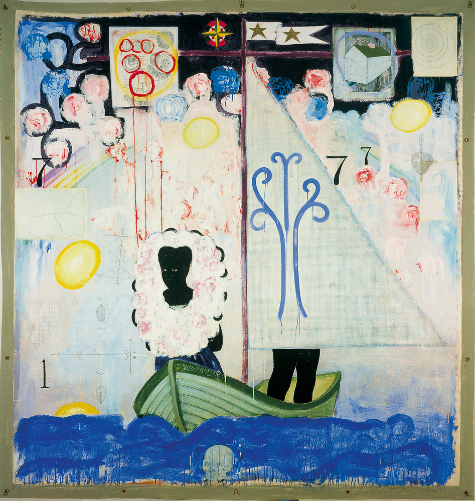 Voyager, 1992, acrylic and collage on canvas, Corcoran Gallery of Art, Washington, DC, Gift of the Women’s Committee of the Corcoran Gallery of Art, 1993.1.2, © 2004 Kerry James Marshall c/o Jack Shainman Gallery, New York. Photo: Corcoran Gallery of Art, Washington, DC