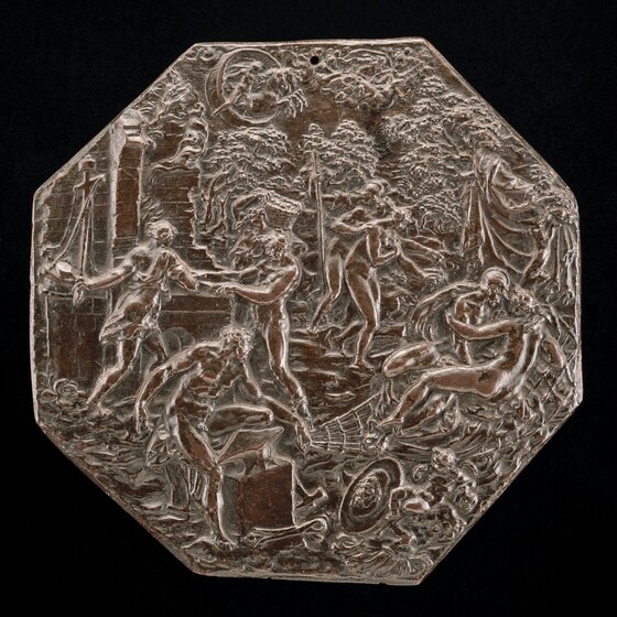 Guglielmo della Porta, Italian, 1500/1510 - 1577, Vulcan Capturing Mars and Venus, c. 1553/1555, bronze relief, Pepita Milmore Memorial Fund, 1987.9.2